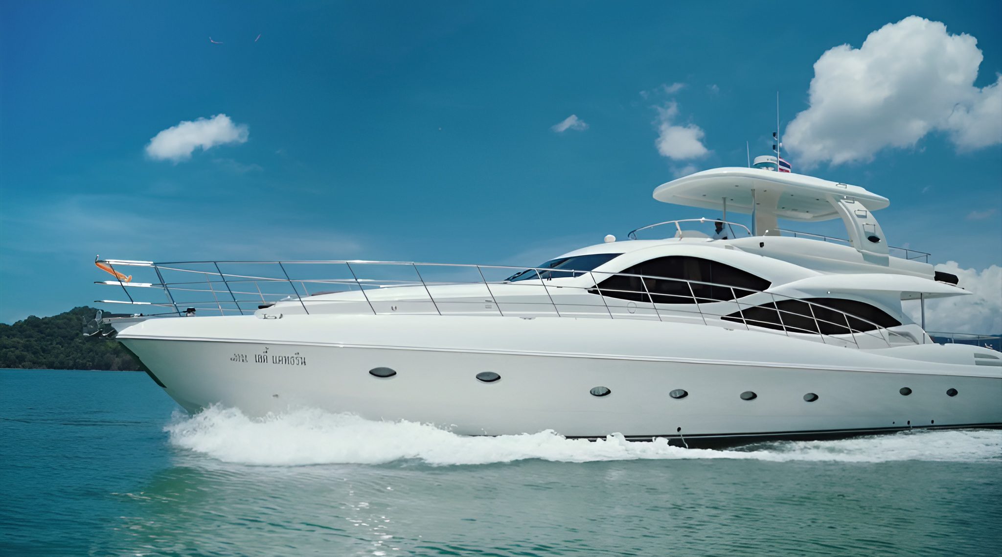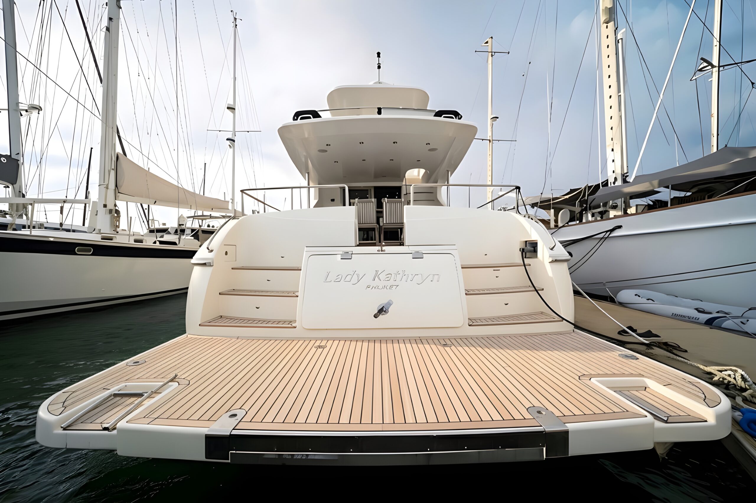 The Lamberti 80 motor yacht is an excellent choice for a private charter around Phuket. Designed to comfortably accommodate guests, it offers everything needed for an enjoyable time on the water. It features a spacious salon and a deck for relaxation. For your convenience, a hydraulic swim platform, paddleboard, inflatable tube, snorkeling equipment, and fishing equipment are also available.